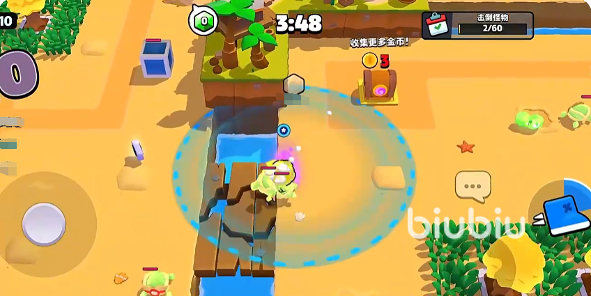 不论小伙伴们对局面临的是什么地图或者地形,这其中都会有不同类型的资源。蓝色宝箱是在出生地一定会有的一个资源,打开之后能从其中获得金币以及宝石,同时还有加速鞋这个道具,该工具很重要,能帮助大家初期快速发展,蓝色宝箱的数量是有限的,并且不会再次刷新出现,所以出门之后小队要快速的抢占该资源。其次就是萝卜地以及大树,它们可以给到金币以及宝石。地图里面还会有一些比较隐蔽的资源,草丛里面会有金币,荒漠地上的土包也有可能获得金币和宝石,总之尽量不要错过每一处的资源。