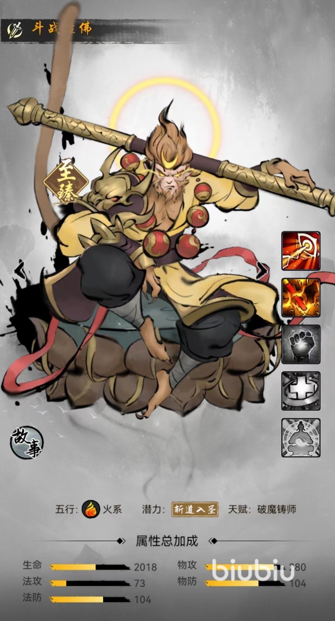 2022年12月05日 20:56 来源:暴烈和快泳蛙相信在神话小说和各种作品中,斗战胜佛的名称都是如雷贯耳,作为孙悟空成佛之后的封号代表着极致战力,在这款以修真为主要玩法的梦入云山中同样可以招募到斗战胜佛一起战斗,今天小编来讲一下梦入云山斗战胜佛怎么样。作为最强战力象征的斗战胜佛在游戏中技能效果如何,又将有怎样的搭配一起来看吧。