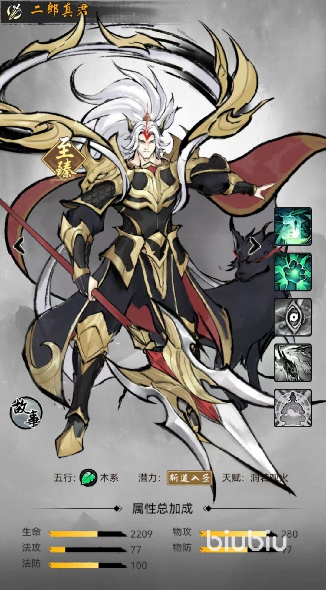 二郎神本身输出也很可观,神通技能八九玄功在输出之后自身进入到加速状态,并且激活被动哮天犬,由哮天犬发动更加猛烈的攻击。二郎神的哮天犬是。非常好用的召唤生物,一直到战斗结束都将持续发挥作用,对于低血量的目标还有额外伤害加成。最后普贤道人同样可以提供治疗和驱散效果,为队伍添加续航能力,现在很多阵容都喜欢使用带有负面状态的角色,而普贤道人就可以很好的克制这一点,并且驱散的数量达到三个,足以应付绝大多数战斗需要。
