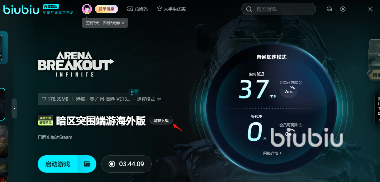 在这个过程中biubiu也是在发力的,它可以帮助我们提升下载速度500%,下载安装用的时间就很短了。而且首月游戏是享受限时免费加速活动的,另外新用户注册biubiu还有免费的24小时加速服务能用呢,加上兑换码【biubiu掉线】给新老用户的72小时加速时间,新人可以用96小时了呢。