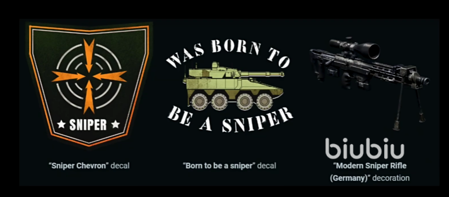这次活动的主题是关于狙杀的,所以我们也有一些外观零部件可以获得,比如说这次的贴花就是狙击手臂章。除此之外就是枪械的外观也是做的更加高精度了,大家可以通过完成任务拿到9个星星,获取现代狙击枪的3D挂件。