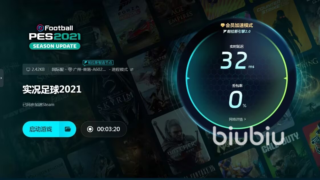 倘若正在看这篇资讯的你是第一次尝试biubiu,那么点击上方链接完成注册之后,登录就可以得到biubiu所准备的24h新人奖励体验,编辑pes2021后直接检索相应版本,启动一键加速,就能够体验biubiu所提供的专属加速服务了,多个端口登录使用起来更加的方便。而大家一直做期待的兑换口令,今天也安排上了,输入【biubiu不卡顿】直接享有三天加速时长。