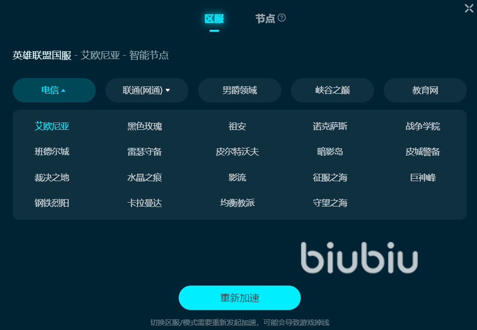 Lol有海量特色又经典的英雄打法体制,非常看重发育与团战。如果在打团过程中掉帧,让玩家的操作变形,甚至分辨不了敌我技能的特效,临时掉链子非常影响团战的成败。不少玩家觉得自身设备硬件的配置足够,但还是会出现卡顿闪退,究竟怎么办?其实这是由复杂网络原因造成的,在硬件过关的情况下,建议大家优先考虑挂上靠谱的biubiu加速器。它是国内大型有多年经验的口碑老品牌,能给各位用户提供电竞级的专线优化。