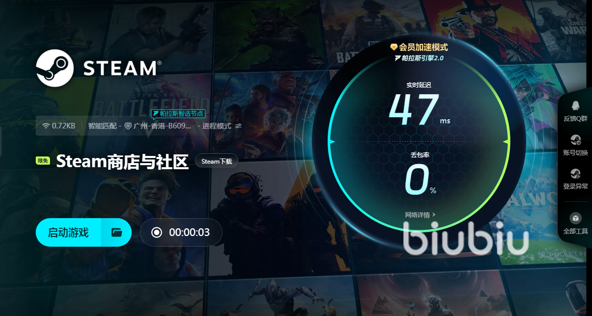 如果之前没有注册过biubiu账号,属于刚刚注册的新用户,那么先不要着急使用兑换码,现在的福利是新账号直接就能获得24小时加速时间,使用完之后,再使用兑换码就可以了。Biubiu操作非常简单,想要加速的游戏或者是steam平台等,直接输入名称就能找到选项,然后点击就开始一键操作。后续的优化过程,都是由软件自动完成,包括利用自身专线实现连接,还有节点切换技术等,帮助找到延迟最低的连接方式。至于后续的充值方面,可以选择多种不同的模式,例如连续包月续费,或者一次性购买全年等,价格方面完全不用担心。平均到每天不足一元钱,一次性购买时间越长,还有更合适的价格,即使是长期使用也完全没有压力。
