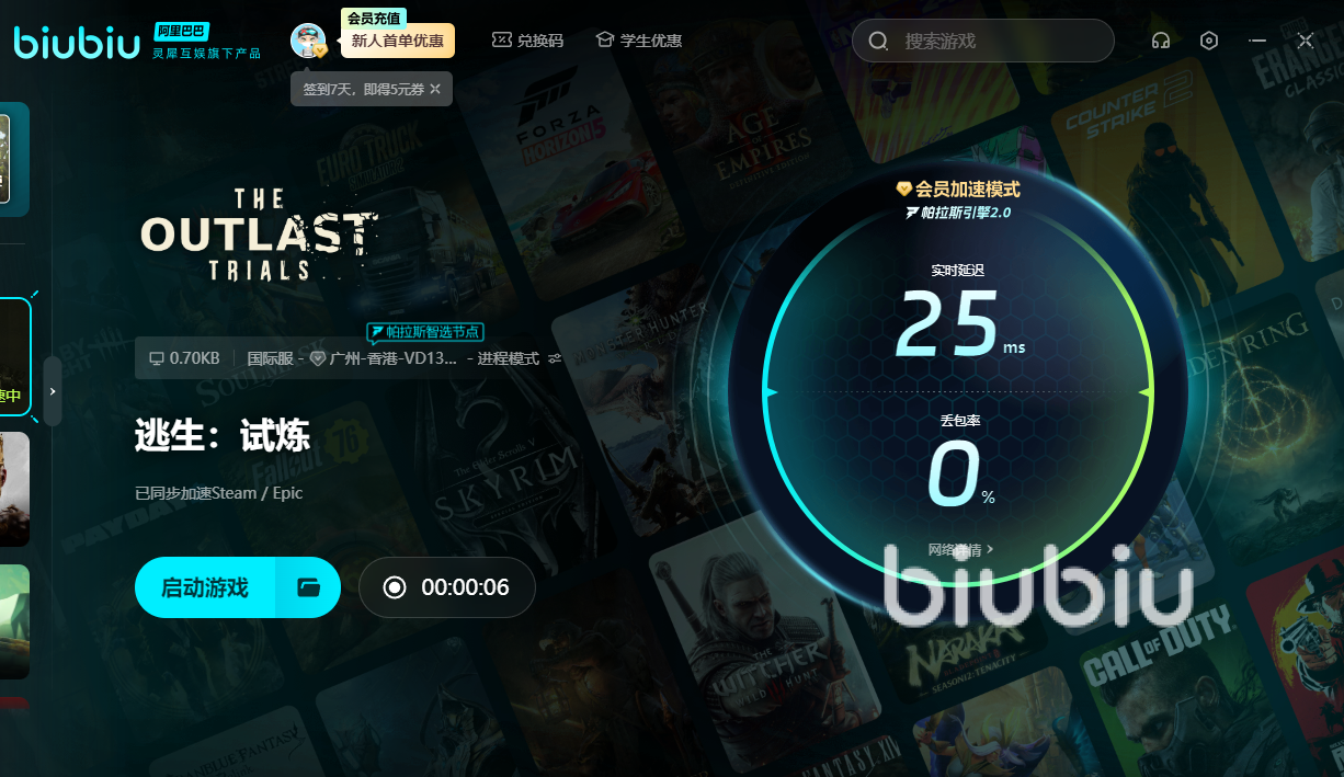 逃生试炼如今还没有上线国服,要是为了被送到恐怖的试炼场景里面。你就需要借助biubiu,网络优化后,才能进入这一场试炼,并开启潘多拉的魔盒。新用户的话可领取24小时的免费加速,另外新老用户输入【biubiu不卡顿】,便可额外获得三天免费加速。如果逃生途中太卡的话,就不能及时躲避鬼怪的追踪并被危险所吞没。用了加速器后,自然不会卡住,让你可以安全无恙的逃离现场。