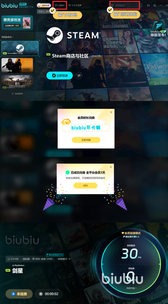 游戏预计在2025年6月正式上线发售,为了流畅游玩建议大家先下载一个biubiu加速器,因为它能确保大家的网络环境,而且现在还有个新用户下载能享受3小时免费体验时长的活动,此外无论新老用户使用【biubiu不卡顿】的兑换码还能额外再得3天。