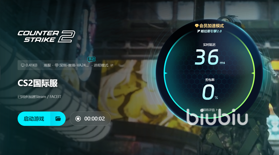 Biubiu特别适配Csgo玩家,对于喜欢国外游戏的玩家非常友好,它解决了网络延迟、传输卡顿和丢包、跨越区域信号不佳、高峰时段网络繁忙等问题,采用了智能路由器和带宽优化。