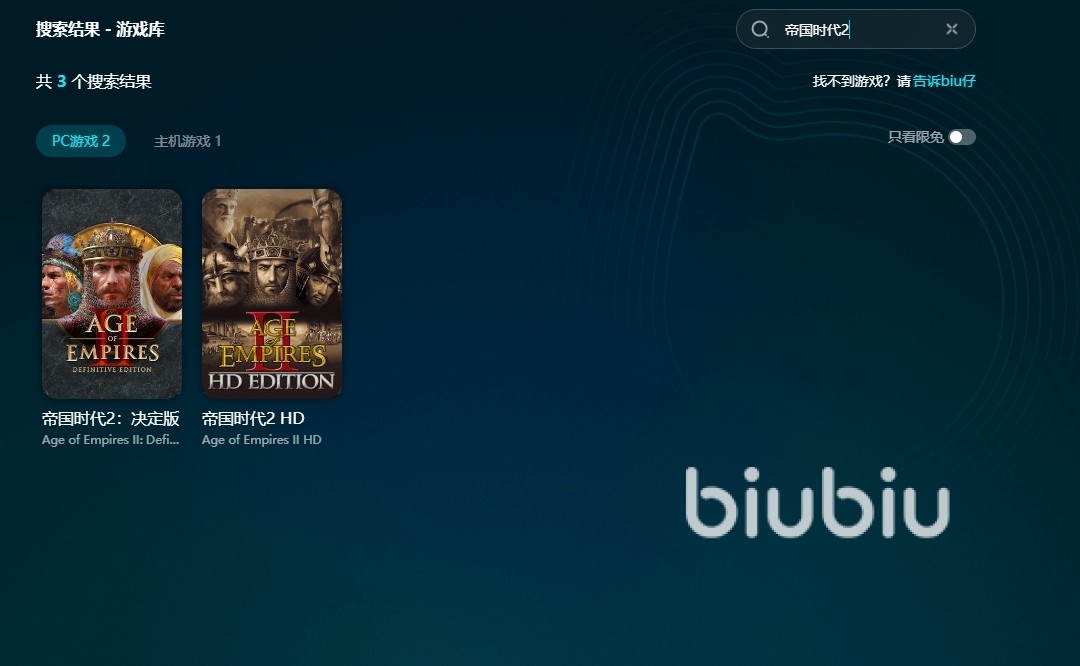 值得一提的是,该软件整体操作起来也很便捷,玩家到时只需去搜索定位喜欢的游戏,比如帝国时代2,然后去一键点击来开启相关加速即可,节省时间同时带来更优质的游戏体验,让玩家轻松感受刺激的战术对抗。而且,biubiu支持主机、PC版本等多种游戏,无论大家到时玩哪种类型游戏,都可在其中找到对应作品并加速。