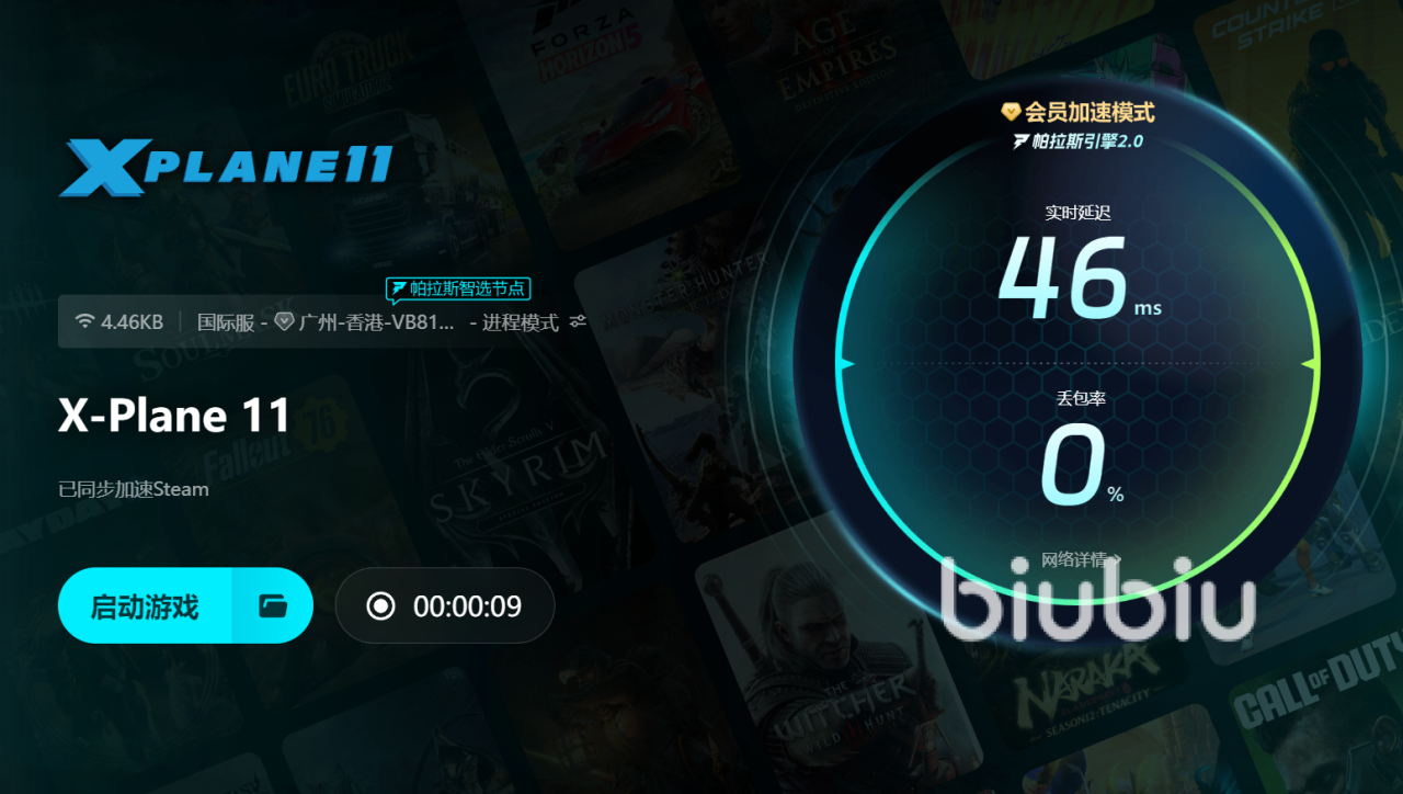 像XPlane11这种模拟的游戏还是比较多的,比如说模拟赛车,模拟自行车等等,竞速游戏偏多,基本上是需要跟其他玩家对拼的,那么没有好的网络是很难实现公平竞争的,那可以成为biubiu的长期会员来提升网络,并且新用户还有首充优惠哦。