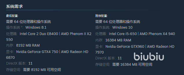 在操作系统方面可以选择Windows 8.1,处理器方面建议选择AMD Phenom II X2 550,在内存方面没有太多的限制,一般只需要不低于8192 MB RAM,当然选卡还是比较关键的,在选卡这方面建议挑选AMD Radeon HD 6870。