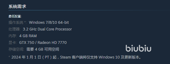 在配置要求上没有什么太多的限制性操作系统可以选择Windows 7/8/10 64-bit,处理器方面可以选3.2 GHz Dual Core Processor,另外在内存方面主要是选择4 GB RAM,当然最关键的自然就是显卡,显卡方面需要考虑 GTX 750以上了。