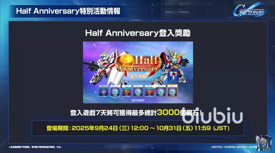 在半周年大版本中官方还开放了多个福利活动,包括累计登录后的奖励,还提供了46次免费机体补给劵等,让大家有机会可以体验到新机体的,当然大家最期待的莫过于超级模式的闪光高达挑战赛,这个非常刺激的模式一直很吸引玩家,这次半周年版本也会限时开放,大家可以通过挑战来获得更多的奖励。