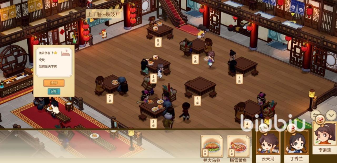 再等十九的时候,龙溟会外出几天,而等到二十二的时候,他又会回来;最后等到二十九这一天,就会有一个剧情事件,而在这个剧情结束以后,小伙伴们就能让龙溟这个角色加入自己的客栈了。
