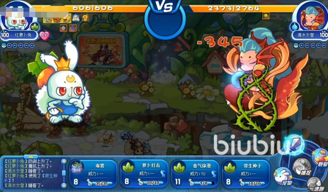 敌人在随后的战斗回合当中,每一次反击都会承受大量的毒素伤害和种子攻击,玩家们在承受一定伤害的时候,清水女皇会受到大量的伤害。各位在继续使用萝卜打击和香气弥漫发动攻势,基本上就可以在本轮战斗当中轻松的把对手给解决掉。