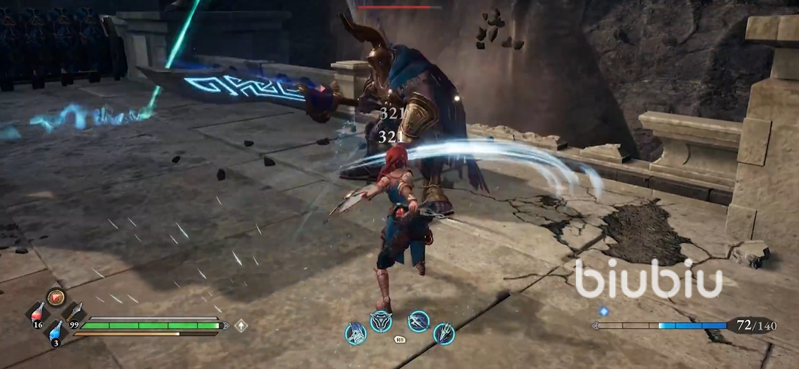 所以在刚进入战斗的时候,建议大家考虑闪避作战的方式。每当敌人冲过来发动攻击的时候,玩家们都需要快速的朝着一旁进行闪避,同时也能够离大剑守卫更近,这时候就将所有的技能释放出来发动进攻,结束之后快速远离敌人。这里操控能力比较快的玩家们,在远离敌人之后还可以继续释放多次远程攻击。