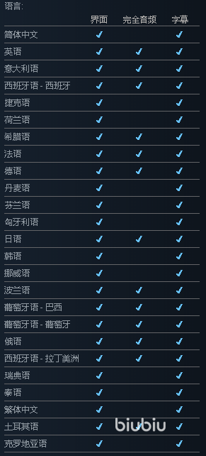 但其实只要翻译能看懂也就足够游玩了,就和看进口电影道理差不多。并且不会根据购买的商店或者IP所在地区锁语言,玩家可以在任何地区的版本享受到全部语言选项,不会有任何方面的限制。