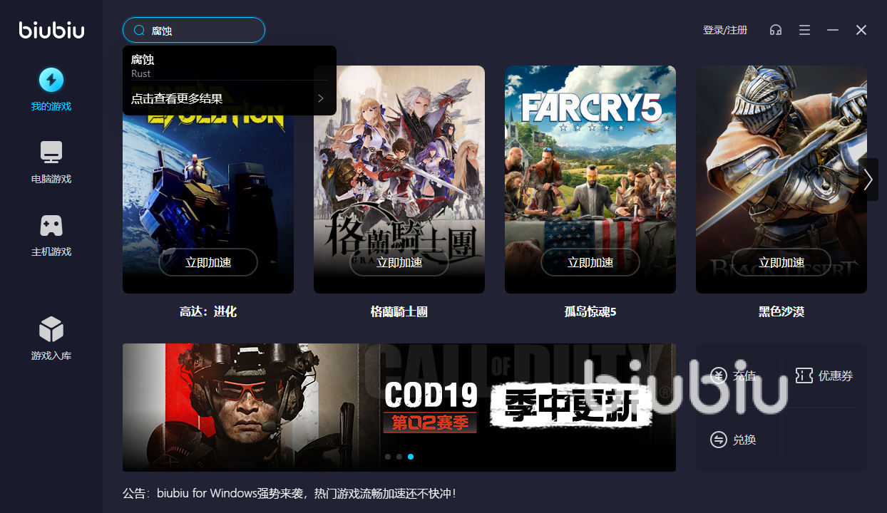 此外,biubiu平台还推出了限时福利,针对STEAM和暴雪平台游戏免费加速,这样一来,不少热门游戏都能免费加速了。