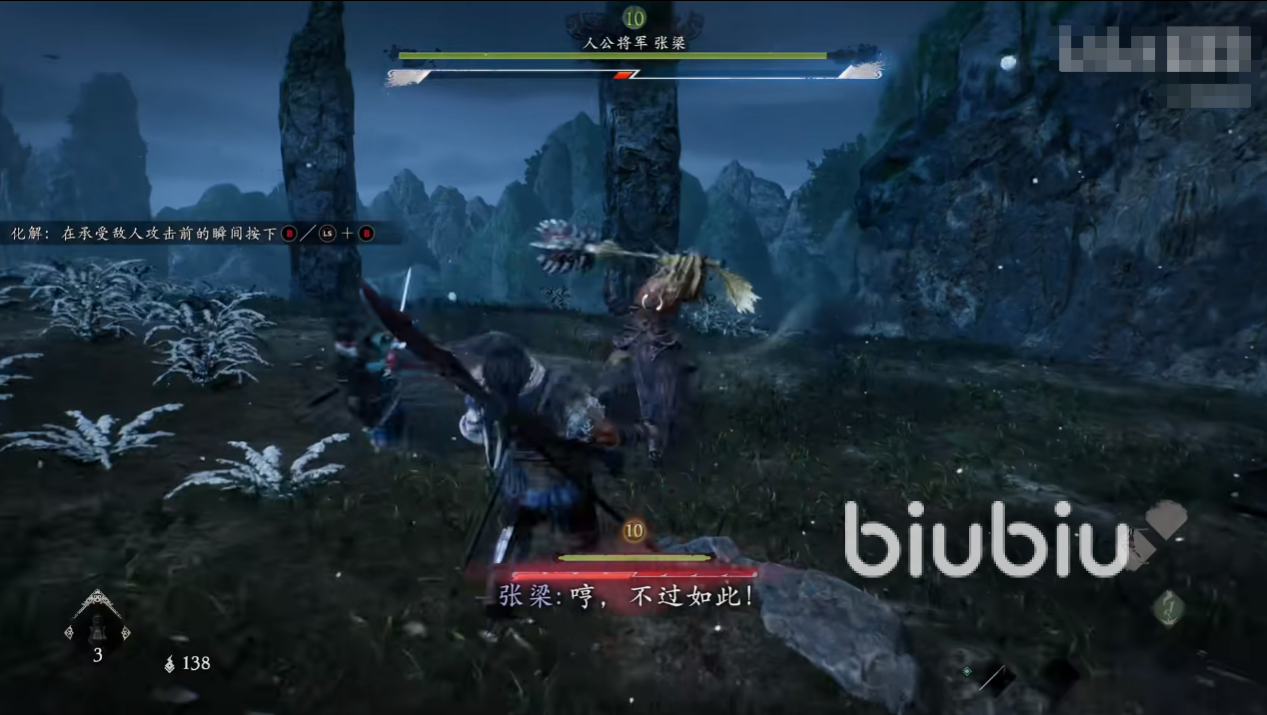 第一个遇到的困难就是人公将军张梁,直接是新人劝退套餐,不过一旦熟悉了游戏的气势处决攻击,加上化解伤害,走位和操作细节一点还是可以轻松躲过的。打完他之后会走一段剧情,主角就会来到东山面对朱厌以及封豨两个怪物,后面一个魔化之后野猪形态还是挺吓人的。