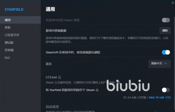 除了游戏内的设置,steam客户端可以进行语言的设置,大家打开steam后在库里面找到星空,然后点击设置,在设置界面找到语言设置,改为简体中文即可。