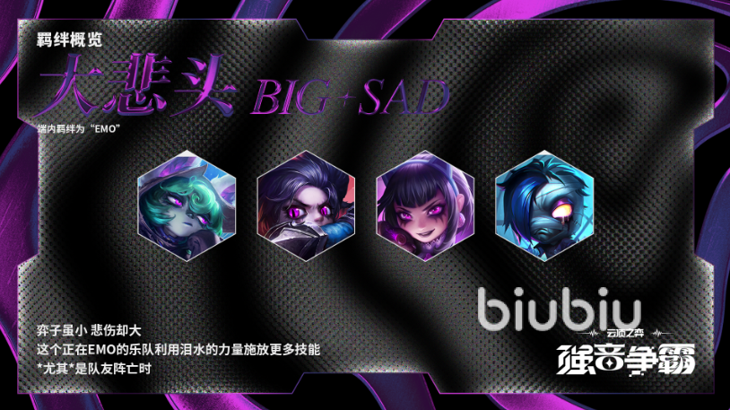 想要四人就凑成羁绊那么就是大悲头乐队,由三个约德尔人和萝莉角色安妮组成,他们可以获得更多的施放技能次数,队友在阵亡时剩下的棋子也会获得强化效果。若想成型快在劣势中反败为胜,这个阵容倒是个不错的选择。