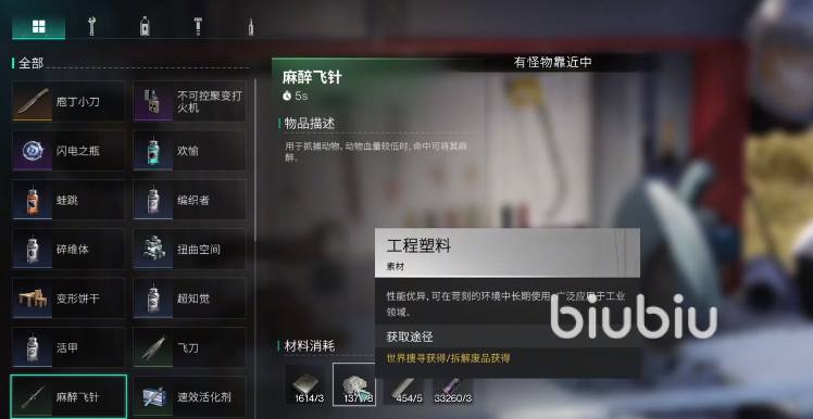 顺利解锁后大家去轻工艺台制作麻醉飞针,牛比较重,我们去捕捉的时候最好带上拓展背包,这样在抓到后就可以继续移动了,等到抓回来去电炉灶制作对应的饲料,就可以进行饲养提升驯服度。