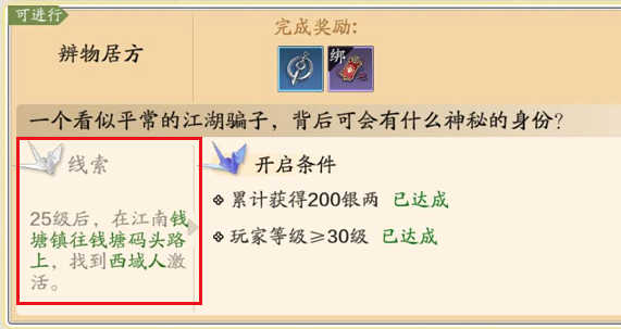 触发奇遇需要一定的特殊条件,游戏里面称之为线索。具体的奇遇触发线索,都可以在奇遇总览的界面里面查看,有的奇遇线索是需要特殊的物品,有的则是需要与特定的NPC进行对话,这些在奇遇总览界面都会有提示。
