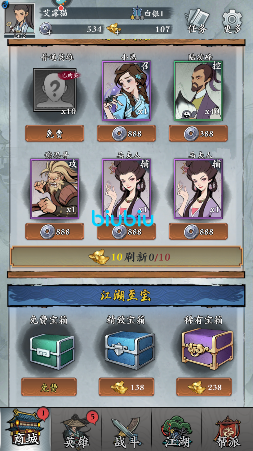 首先这些人物一共分为四个品阶绿、蓝、紫和金,其中绿品最弱金品最好,当然金品的人物也比较难获得,小编现在也就只有一个,金品的人物基本上只能从宝箱中开出来。