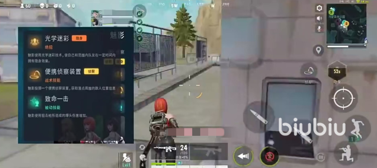 Mk2的被动技能和大招需要配合使用,大招布置一个跳伞装置,mk2弹射到空中进入跳伞状态,对某个范围进行扫描,将范围内敌人信息获取出来。另一个技能还能自动对面前范围发射火箭炮攻击。魅影能使用狙击枪,战斗中远距离爆头伤害很高,战术技能可获取大范围内敌人的信息共享给队友。