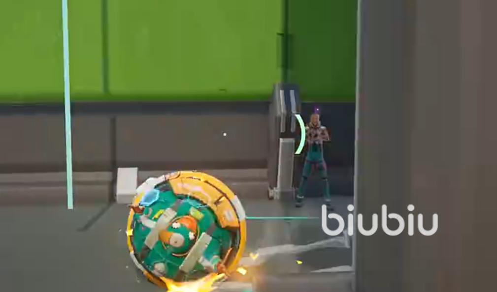 他的一技能“高速冲刺”会用非常快的速度进行冲锋,并在自身的身后留下加速装置,队友碰到加速装置的话移动速度将会有所提升,升级天赋一后会显著提升加速装置的加速效果,升级天赋二会在队友获得加速装置的同时让其拥有一个护盾。