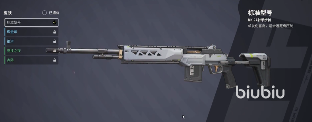 1、MK-24,该武器拥有高射击速度以及低后坐力的优势,在中远距离点射的情况下手感非常的好,稳定性比较高,能给敌方带来持续的压制效果,是相对比较好上手去使用的一把狙击枪。