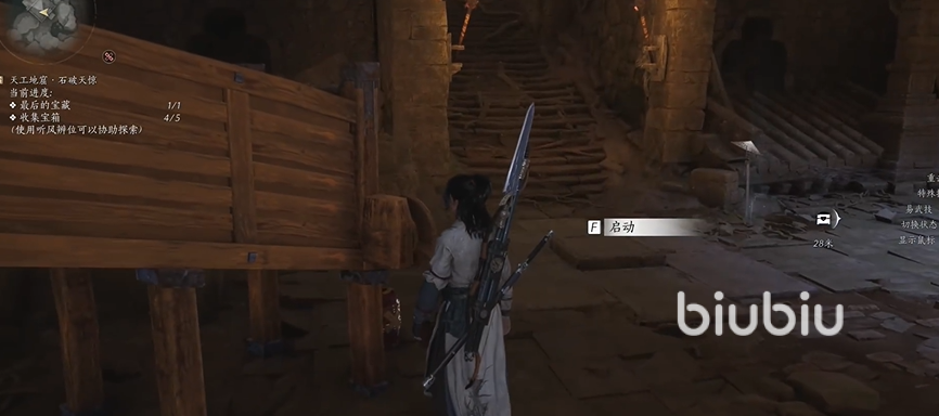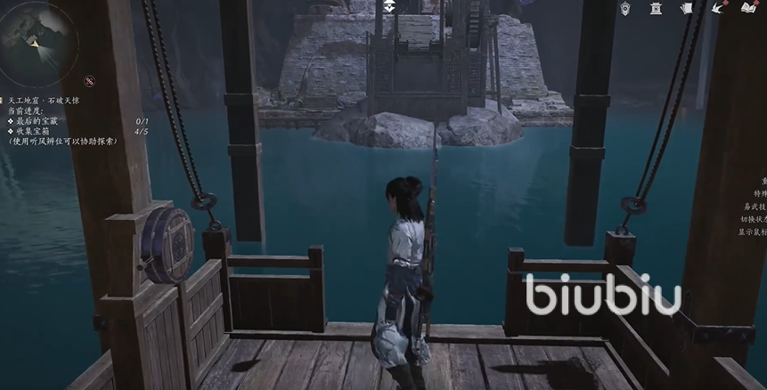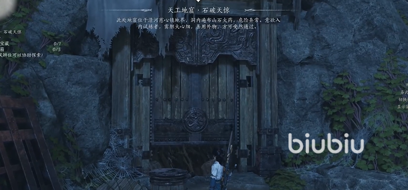 首先小伙伴们需要去清河,然后点开左上角进入地图,之后到达入口,用机关把地库大门打开,进入之后小伙伴们一直往前走,直到看到一个木质机关,启动机关之后会得到一个炸药桶,把这个炸药桶搬到对面有石块的地方,用火箭引爆,从而得到第一个宝箱。