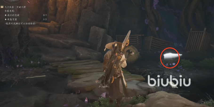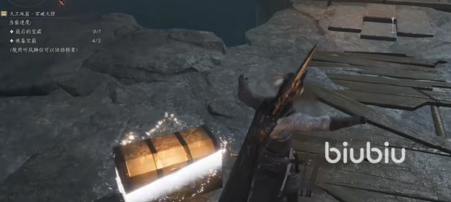 顺着场景继续向前走跳下平台就可以看到最后一个宝箱,这里的宝箱是有图标提示的,基本上是不会看不到的。