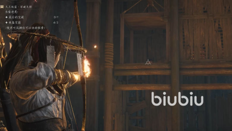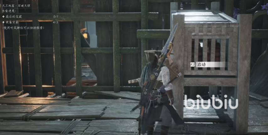 然后在场景中找到一处梯子,顺着梯子来到架子上层,这里也有藏一个宝箱。