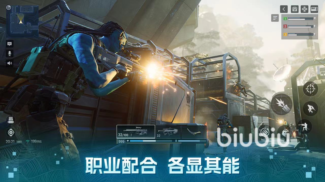 在画面设计上非常精美,拥有逼真效果,将电影中潘多拉星球真实还原出来。整个场景策划以恢宏绚丽为主,远处有成群的山峰,随处都能看见高耸入云的大树,天空中不时还有自由飞翔的野兽。地面上各种各样环境应有尽有,包括火山,雨林,瀑布,浮岛等,亲身感受到异域星球的独特魅力。既然是科幻游戏,自然少不了奇异生物加入,这里有巨狼,飞龙,雷克萨斯等,都可以和玩家进行战斗或互动。