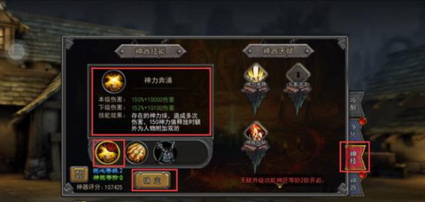 神器技能升级能够很多提高技能伤害,神器技能级别无法超出当今神器级别。