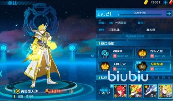 首先为大家推荐的就是黄金圣天衣,各方面属性相当出色,占据一定的优势,因此很值得玩家去体验,亚比技能为魂耀拳、传说之星、天降正义、无限龙魂。每位新手玩家都能轻松使用,容易上手可玩性较高。
