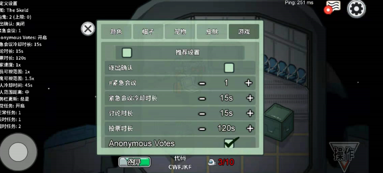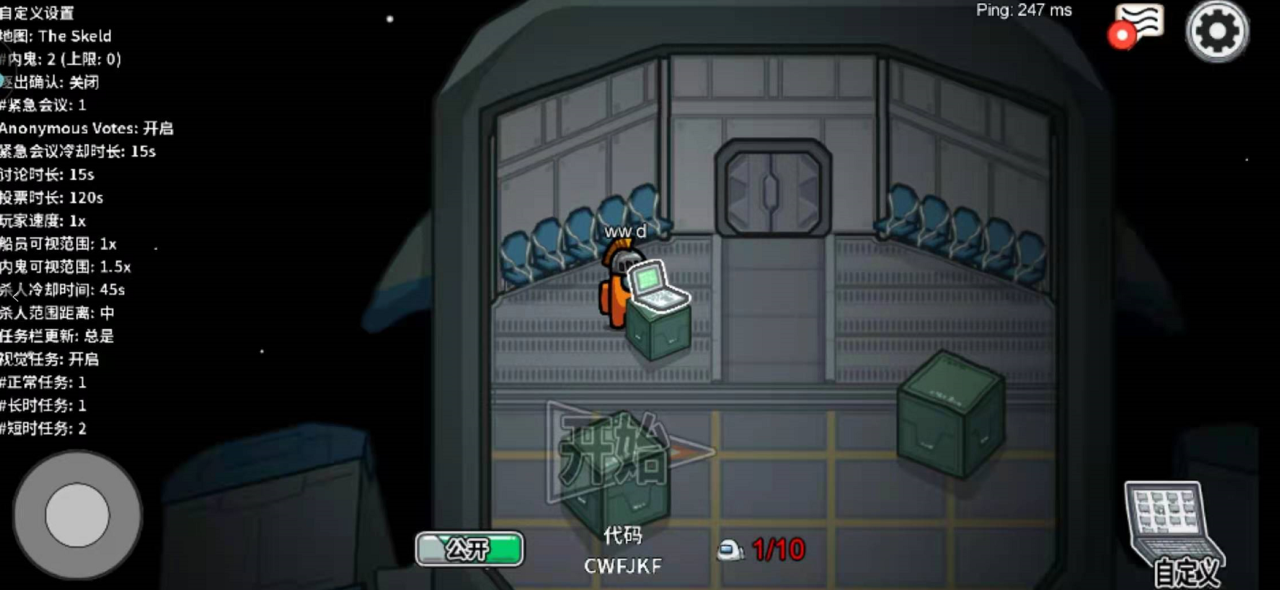 进入游戏后,我们可以点击创建游戏来建立我们自己的房间。房主是可以更改游戏的设置的,我们创建房间后,移动到电脑位置。右下角点击记自定义,进入游戏设置的页面,在游戏设置页面中可以修改玩家的移动速度。我们在玩家速度中可以选择减少初始移动速度的倍数就可以完成移动速度变慢操作了,左上角就有该房间的设置信息。