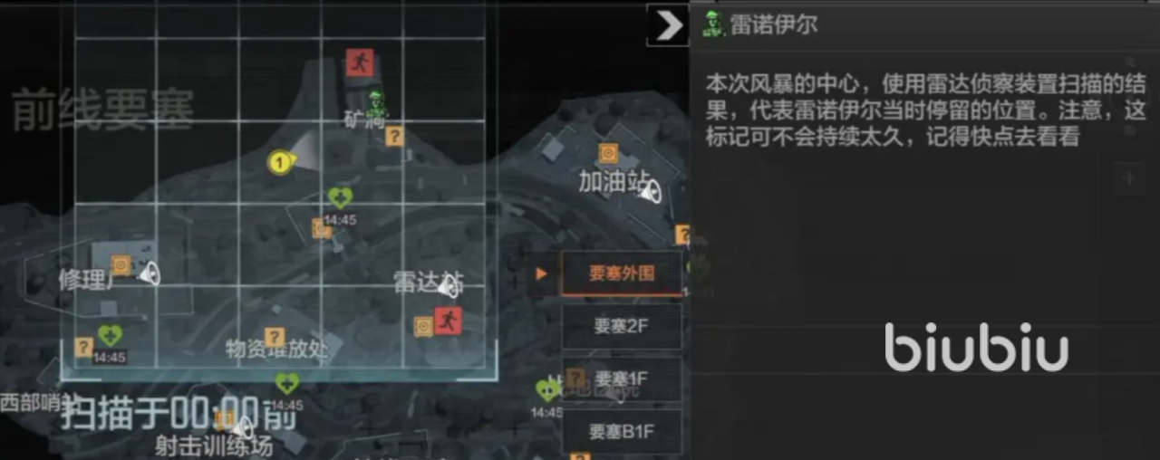 战局内自动下发侦查雷达道具,使用道具可以扫描并发现周围敌人的位置,雷达初始有2次使用机会,后续每150秒自动回复一次使用次数,大家要根据战局的情况来合理分配好扫描做到知己知彼,此外雷达除了能发现敌人外,还能定位要塞boss的具体位置,当boss出现大家会收到提醒,此时用雷达扫描,只要boss在防卫内就会在地图上标记处确切的位置。