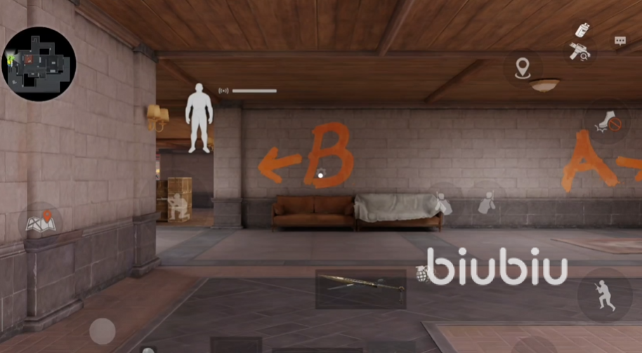地图里面总共有AB两处爆破区域,其中爆破区域A位于1楼,爆破区域B在二楼,每回合开始前都有一定准备时间,进攻方在准备时间内被限制在出生区域,一定要记得派队友带包;防守方在准备时间内也不能离开防守区域,不过可以在该区域内自由活动,布置防守。