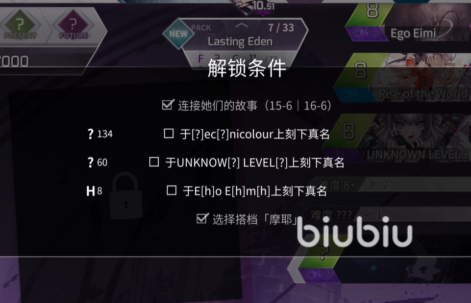 首先玩家们需先购买《Lasting Eden - Chapter 2》曲包,在游戏内商店的 “额外内容” 栏可找到该曲包,若未购买这个角色是无法进行解锁的。然后需要完成主线故事第 15-6 与 16-6 章节。