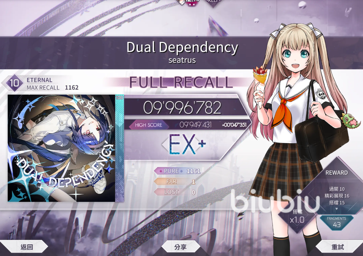 在基础曲包逐步通关后,建议解锁《Black Fate》和 《Luminous Sky》 两个进阶曲包,Black Fate绝对是“手残手快分水岭”的经典合集,曲包中不仅拥有大人气的《Fracture Ray》《Tempestissimo》等高密度谱面,还充满了复杂交叉Arc与节奏变化,是从8级向10级过渡时的重要跳板。熟练掌握后,对于方向识别与屏幕操作流畅度都会有质的提升。
