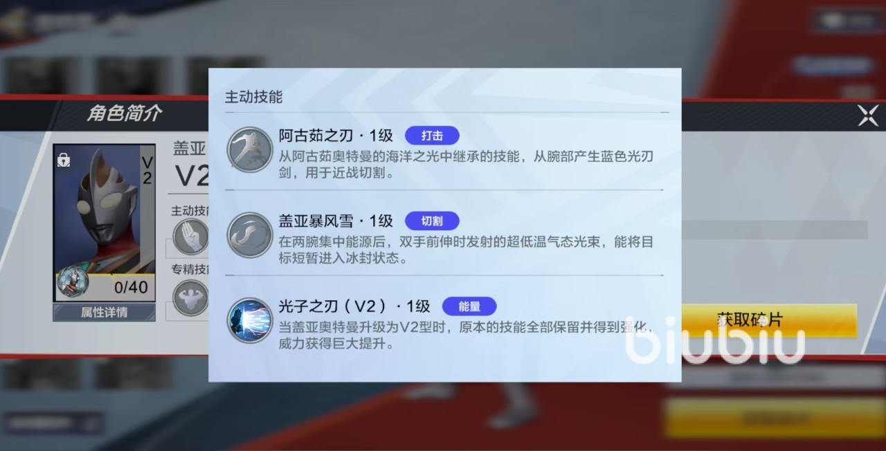 再来看一下v2型,v2型的主要技能包括阿古茹之刃、盖亚暴风雪和光之刃v2。阿古茹之刃是盖亚v2在阿古茹奥特曼的海洋之光中所继承过来的技能,在腕部产生蓝色光刃剑,可用于近战切割。盖亚暴风雪是在双腕集中能源后,双手发射超低温气态攻击,可将目标短暂进入冰封状态。光之刃v2是升级到v2型时,原本的技能进行强化后得到的,效果接近,但是威力获得了巨大提升。