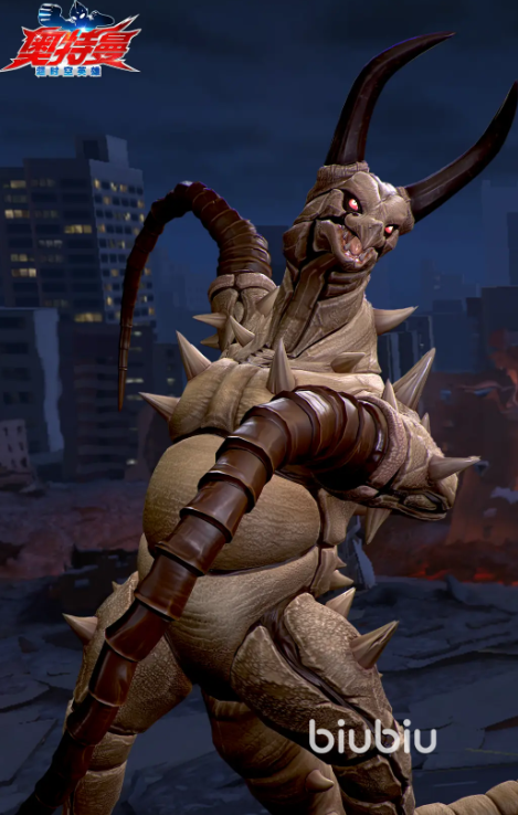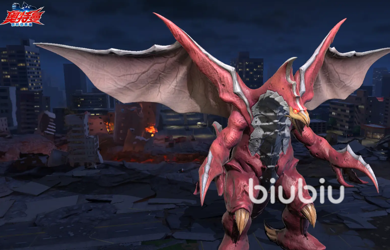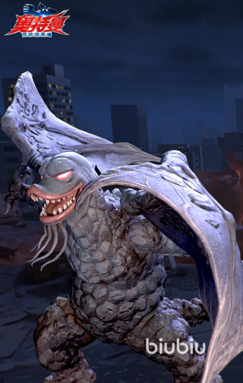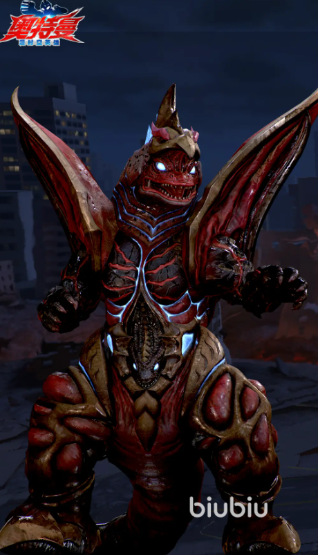 这是由5种怪兽组合诞生的强大敌人,他身体的各个部位都有着强大优点和能力,手腕可以吸收敌人的攻击,并把能量转变成自身的防御值,他的腹部能发射金色散射光弹,光弹会呈现扇形的样子覆盖前方区域,对多个敌人形成穿透伤害,它的翅膀能张开后向上迅速起飞,再用极速俯冲攻击地面敌人,落地时产生的震动会对周围目标形成眩晕,头部能发射出光线并在命中点产生剧烈能量爆炸。