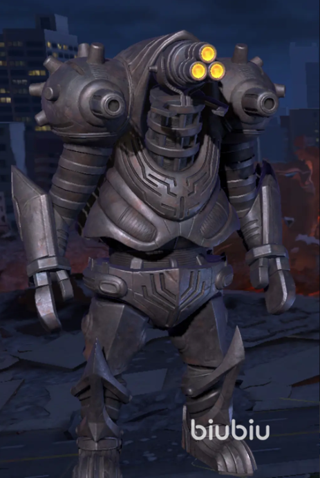 由3只怪兽组合而成,有着大额头和锐利的牙齿,它在攻击时会汇聚能量,从额头处喷射蕴含强大破坏力的光线,该光线高温的同时伴随震荡效果,它头顶的独特眼睛,可以发射出能灵活追踪目标的怪异光线,在命中敌人时还会干扰目标的感官,为接下来的攻击进一步创造条件,它的腹部会发射出如雨点般的光弹,光弹速度很快能对目标进行密集打击。