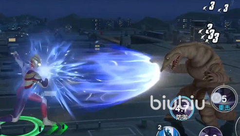 这对战就和传统格斗游戏的对战一样,在战斗中玩家需要组合技能进行攻击,这攻击的形式有很多种,在这个攻击的过程中大家还能看到怪兽和奥特曼的攻击形式和原作中非常的相似,这是该作对技能进行了还原。