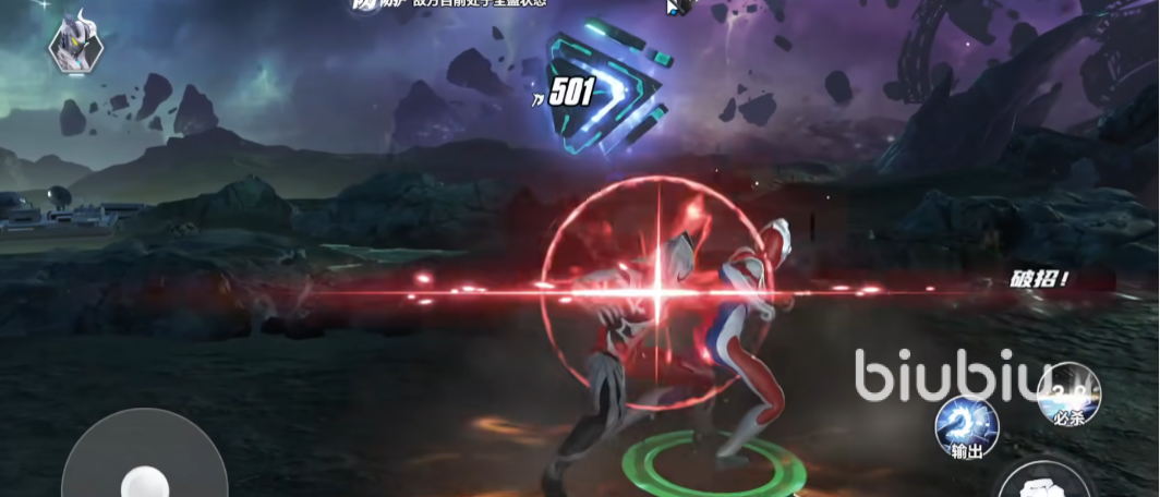 2技能“闪亮切割”,这个招式有两种不同的释放形式,其中短按技能按钮后,连续对前面投掷两个光轮,被命中的单位受到伤害;还可对技能进行长按,长按需进行蓄力,蓄力后对前面投掷出一个巨大的光轮,敌方受到多段伤害。