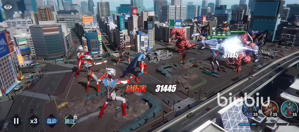 奥特曼系列对决是回合制战斗,玩家在游戏中可以最多派遣6名奥特曼组成战斗小队,参与对抗怪兽或其他对手的战斗。战斗过程是按照角色的速度属性轮流进行操作的,速度越快的角色越先出手,当轮到某位奥特曼行动时,玩家可以选择释放技能或进行普通攻击。
