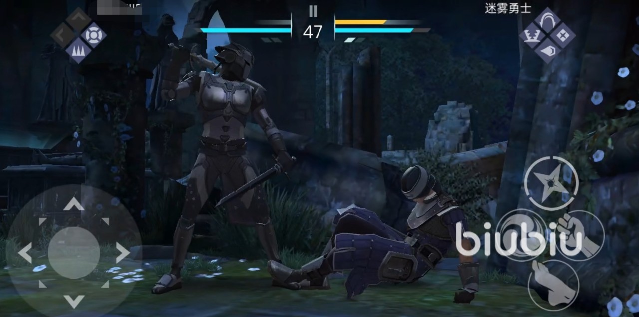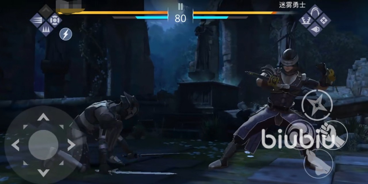 而且值得一提的是基博积攒能量的速度是非常迅速的,因此小伙伴们可以放心大胆地使用这一角色,但是在基博恢复能量的时候,大家要记得先用刀来抵挡敌人的攻击哦!此外,迷雾勇士还会使用飞踢来攻击玩家,其实这一招抵挡起来也不难,只要拿刀往头上一摆就好,只是迷雾勇士的攻击都没有太长的前摇,所以可能会有一些比较出其不意的攻击。