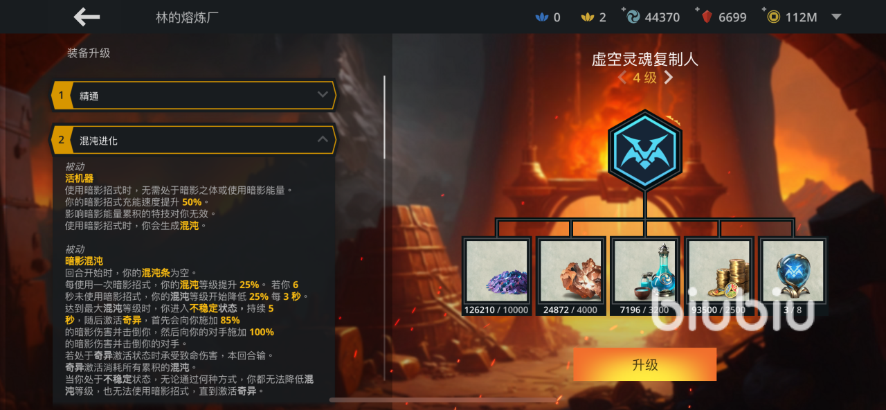 但是复制人有一个致命点就是连续释放暗影技能混沌条4次满了之后自己隔一段时间内就会自爆,本回合直接输掉。但是将套装效果强化到4级之后,虽然会自爆但是自己只受到80%的伤害,不至于直接去世,然而对手则是会受到100%的伤害;而且当自己的混沌条有进度,也就是至少释放一次暗影技能后周围就会生成一个气场,持续的对敌人造成伤害,这是一个绝对的单挑boss神器,在使用暗影技能的同时持续控对方在他身边一直造成真伤害灼伤,6级套装效果最明显的变化就是在自爆的时候自身不会被击倒,其他各方面的伤害和防御有所增强。