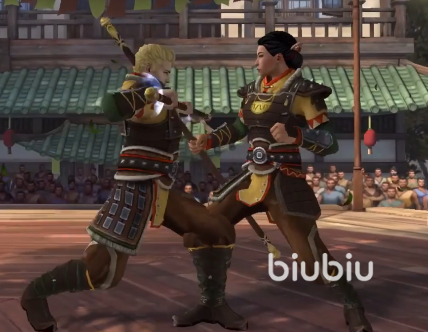 游戏的剧情第一章难度不算高,除了最后的萨奇需要小心一些,其余的敌人都比较好对付。接下来我们从第二章开始介绍。第二章一开始我们因为暗影球的事件进行逃亡,之后在琼的安排下我们进入到王朝的学院之中进行躲避。我们的第一场战斗需要和伽林来进行对决。伽林这位角色使用的是长棍,本身的攻击距离比较长,但是攻击力和攻速都不算高,这场战斗难度很低,玩家们只要使用攻速较快的武器,然后近身不断的进行攻击便可以将其压制了。